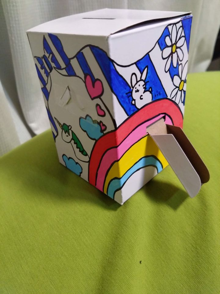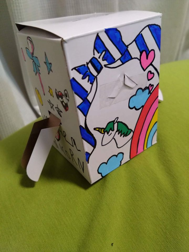 制作時間は、箱の部分が10分、お絵描き1時間。